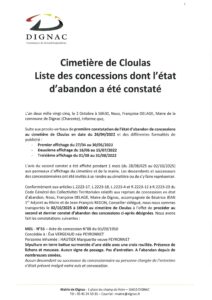 Procédures de reprises de concessions vieux cimetière de Dignac et cimetière de Cloulas