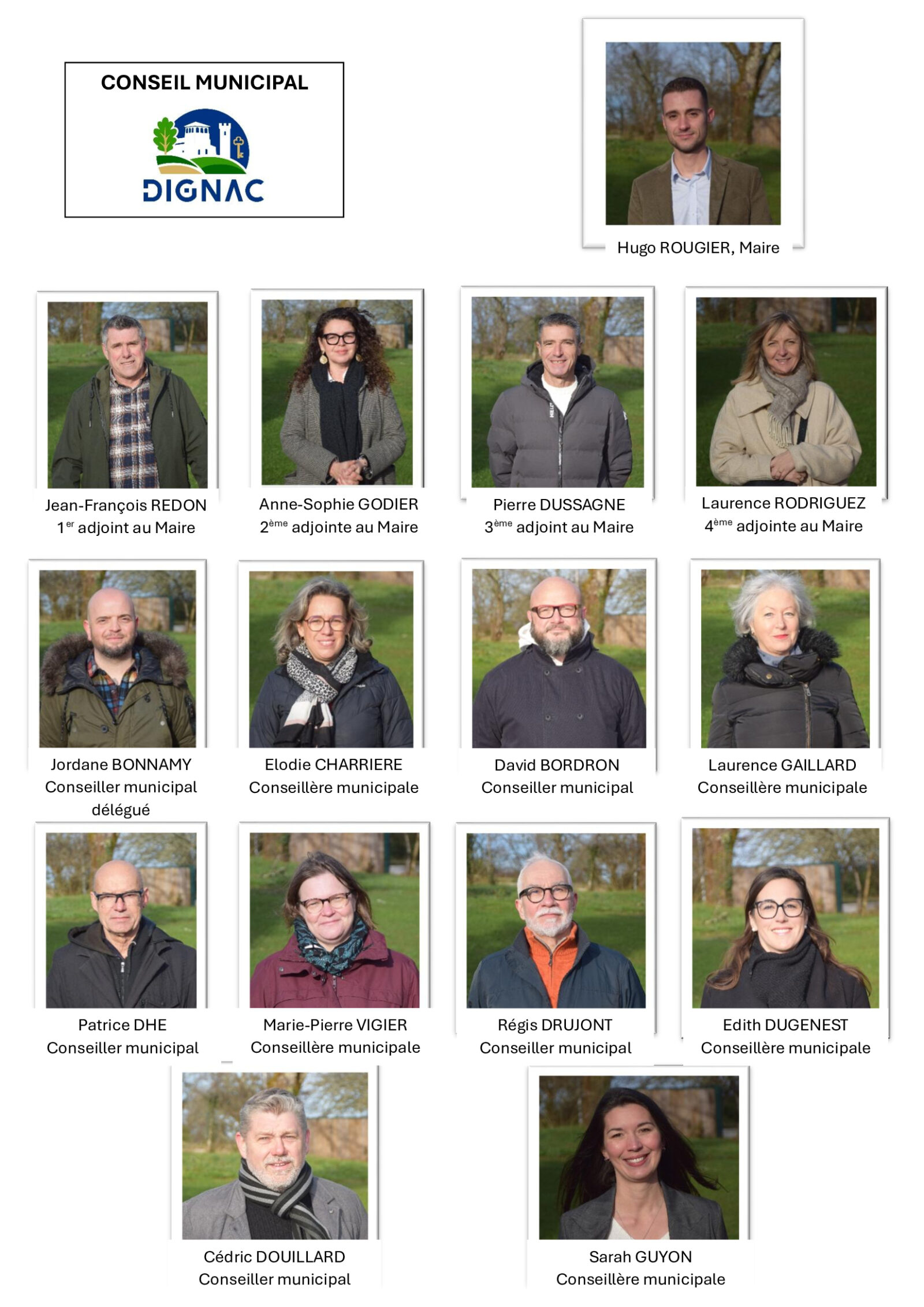 Dignac Le Conseil Municipal de Dignac, élu en mars 2026, compte 15 élus :