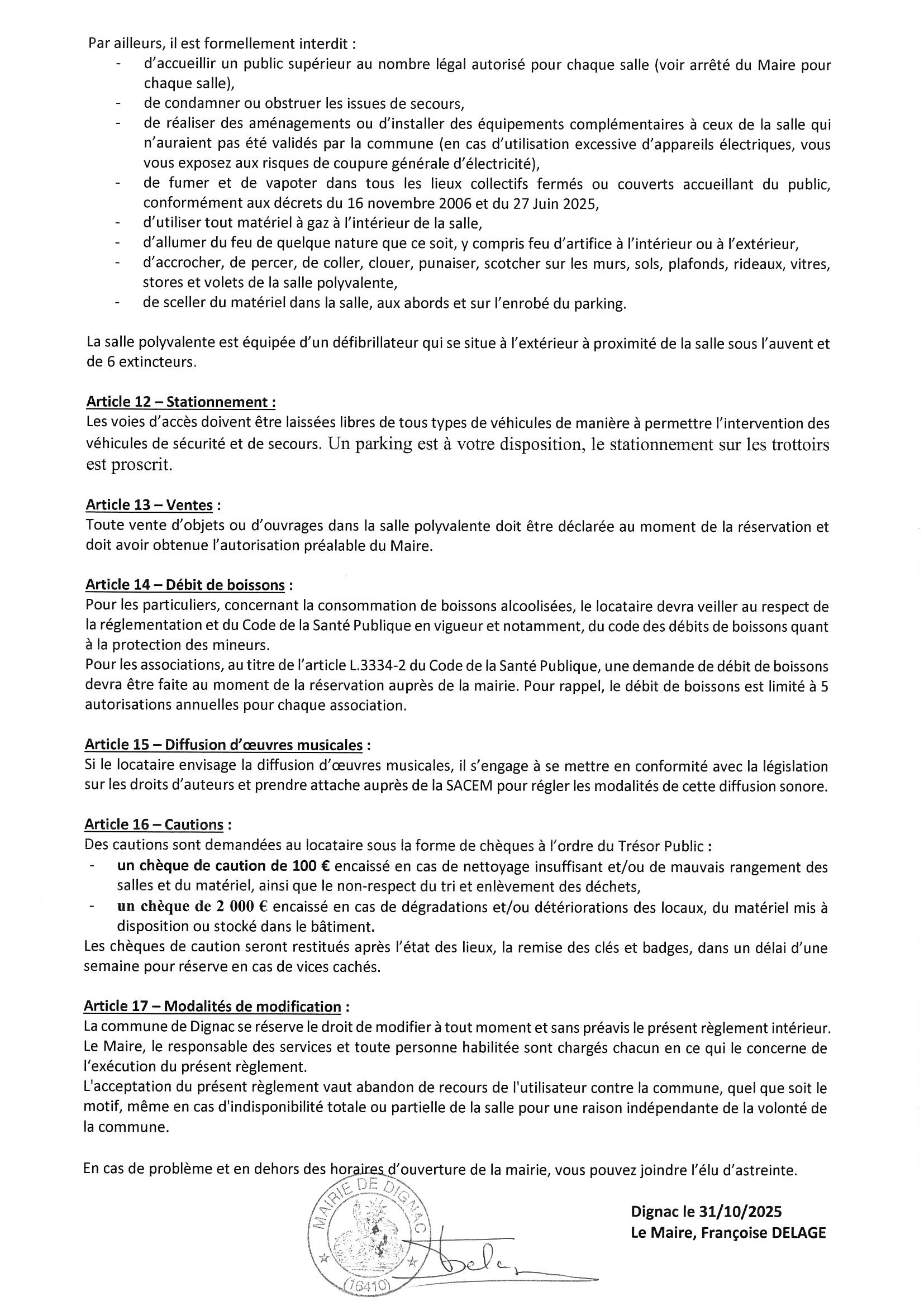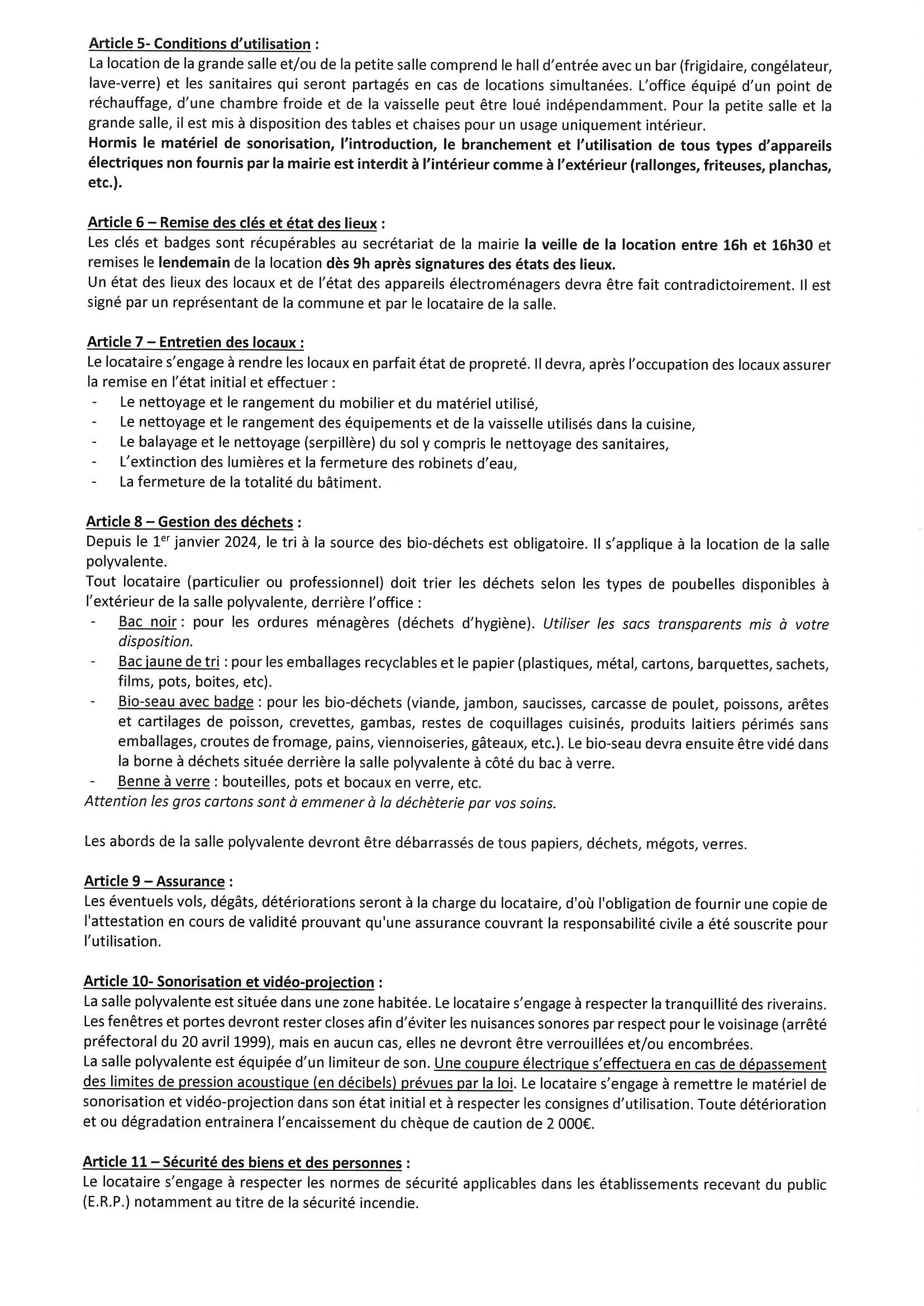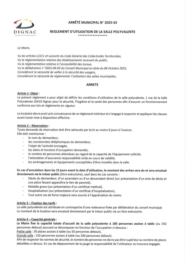2 - REGLEMENT D'UTILISATION DE LA SALLE POLYVALENTE (Arrêté Municipal du 31/10/2025)