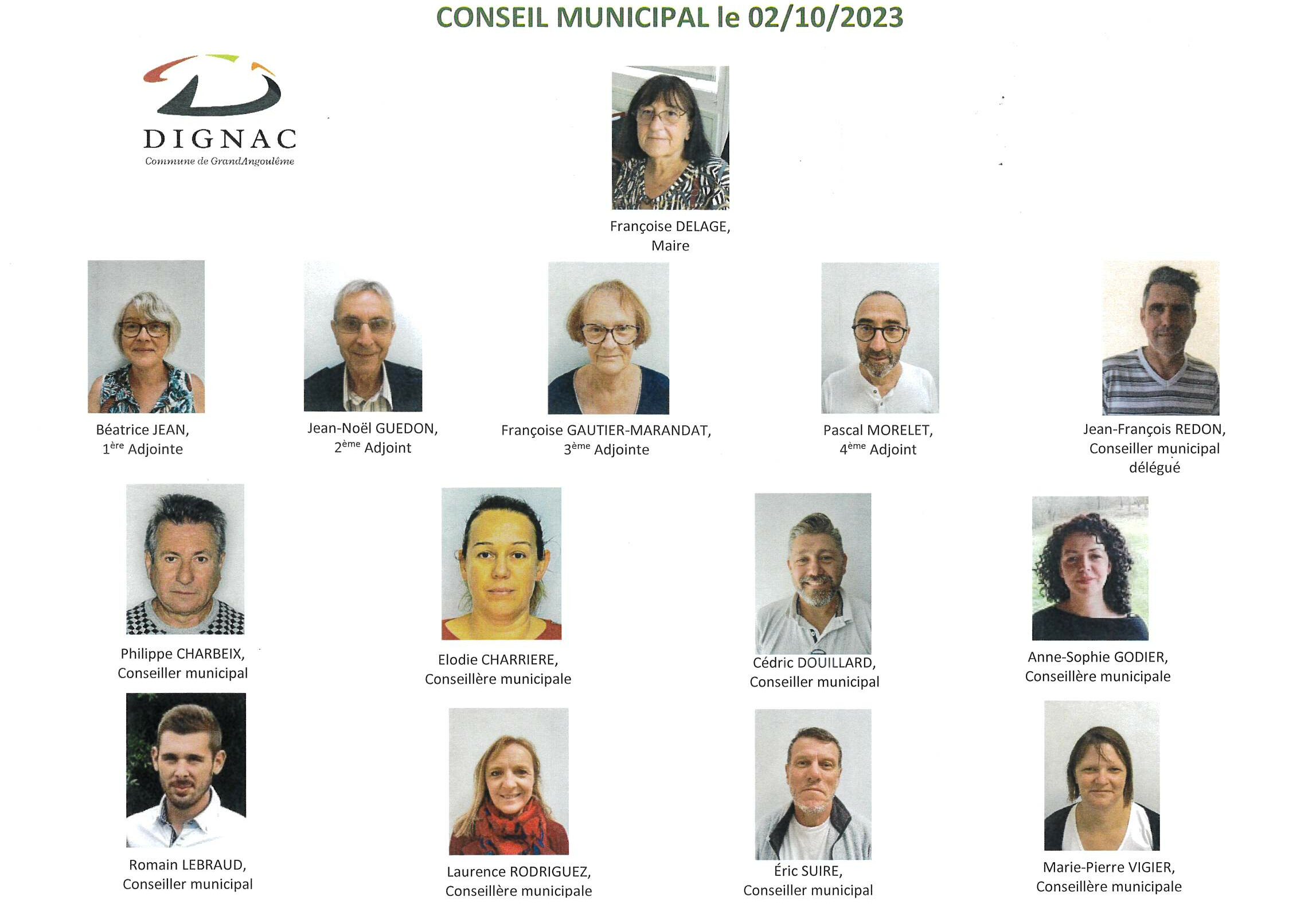 Le Conseil Municipal de Dignac, élu en mars 2020, compte 14 élus :